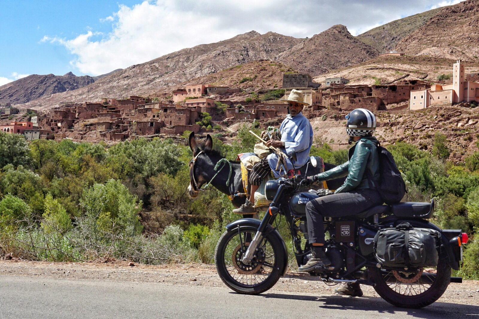Ein Royal Enfield Motorrad und Ersatzteile.