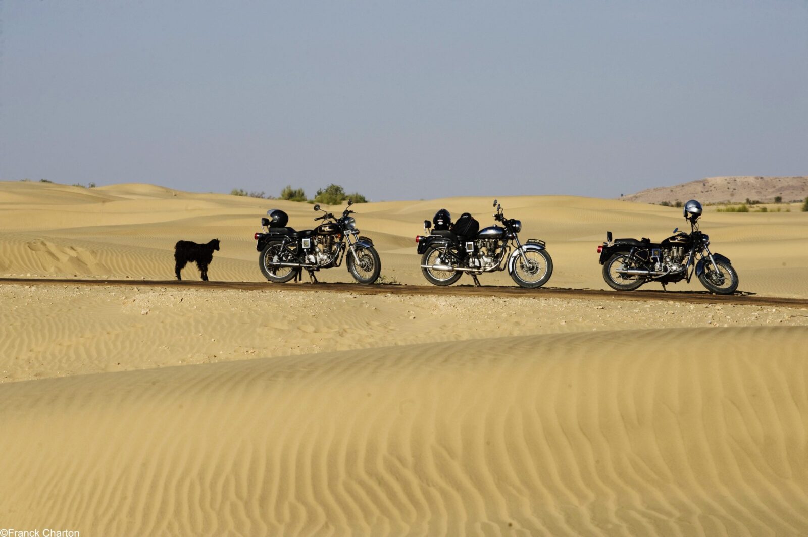 Du bist ein begeisterter Motorradfahrer, stehst auf exotische Reisen und möchtest am Lenker der legendären Royal Enfield ins Abenteuer aufbrechen? Entscheide dich für eine unserer 5 Biker-Touren durch Rajasthan. Wir haben maßgeschneiderte 7- bis 16-tägige Touren zusammengestellt, bei denen du voll und ganz in die Umgebung eintauchen kannst. Das Programm? Je nach Reiseroute wirst du das Taj Mahal, Udaipur (das Venedig des Ostens) oder die Wüstenstadt Jaisalmer besuchen. Die Region beherbergt auch viele geschichtsträchtige Orte, die du entdecken wirst, wie z.B. das Bikaner Fort oder das Ramathra Fort... Auf deiner Reise profitierst du von einer außergewöhnlichen Nacht in den Dünen der Wüste Thar, bevor du Jodhpur erreichst, die "blaue Stadt" und eine der schönsten Städte Rajasthans. Wunderbare Begegnungen mit den Einwohnern erwarten dich in zahlreichen Dörfern mit Stammesbevölkerung, die du auf deiner Reise durchqueren wirst. Rajasthan auf einer Motorradtour zu erkunden bedeutet auch, seine Tierwelt aus nächster Nähe zu erleben. Komm mit auf eine unvergessliche Safari, um Tiger, Krokodile und Sambars in ihrem natürlichen Lebensraum zu sehen. Wer weiß, vielleicht triffst du unterwegs sogar auf eine Herde von Hirschziegenantilopen? Wenn du unberührte Natur entdeckst und Einheimische triffst, wirst du endlich den Eindruck haben, eine authentische Reise in Rajasthan zu erleben. Möchtest du mehr über die von Vintage Rides angebotenen Reiseziele erfahren? Entdecke auch unsere Motorradtouren in Südindien und Madhya Pradesh.