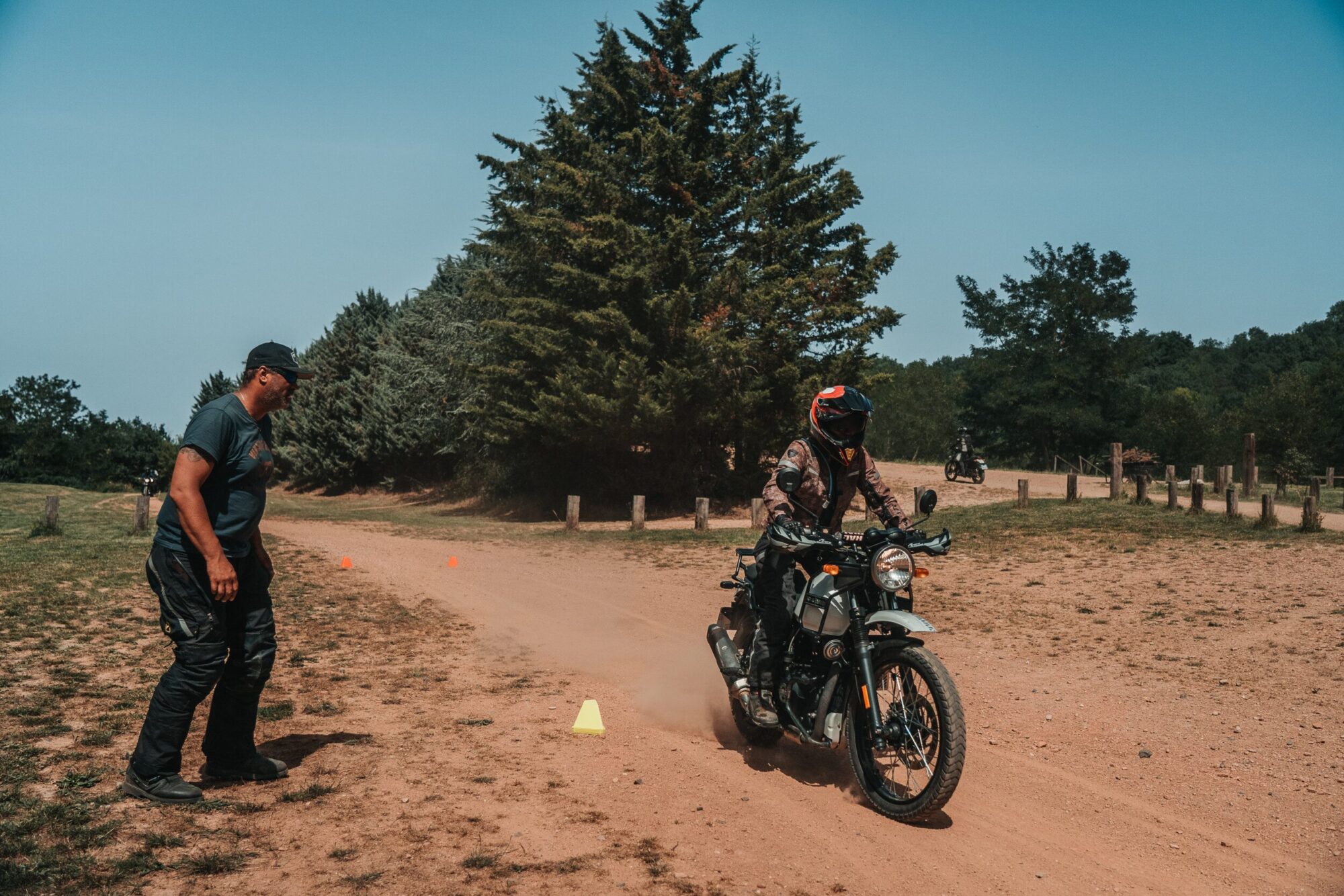 Un stage de pilotage moto vous permet de découvrir, ou reprendre, les bases du pilotage off-road au guidon du trail Himalayan de Royal Enfield. Ce stage moto vous sera utile pour votre conduite sur route au quotidien et pour partir à l’aventure en alliant sérénité et plaisir. Que vous soyez déjà partis avec nous sur la route, qu’un projet de trip moto se concrétise dans votre tête, ou que vous souhaitiez simplement participer à une sortie entre amis le week-end : vous êtes les bienvenus à la Vintage Rides Academy pour un stage moto off road. Vous pouvez également découvrir nos autres trip moto en France.